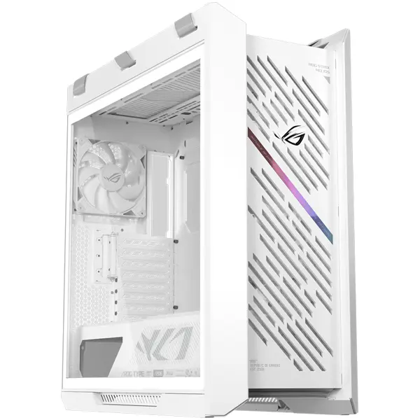 ASUS ROG Strix Helios II GX601S White Edition EATX mid-tower gaming case with dual tempered glass side panels, GPU support for up to 450mm in length, aluminum frame and front panel, GPU braces and 420, 90DC00W3-B39000