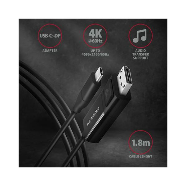 AXAGON USB-C -> DisplayPort cable 1.8m 4K/60Hz, RVC-DPC
