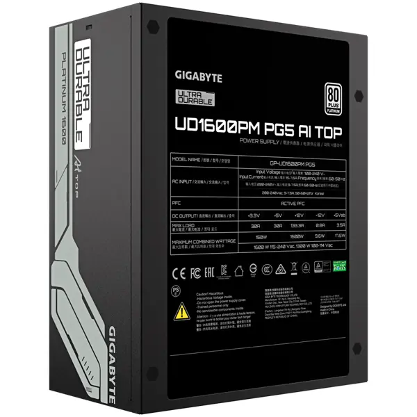 GIGABYTE UD1600PM PG5 Power Supply 1600W, 80+ Platinum, ATX 3.1, PCIe Gen 5.0, Modular, EU, UD1600PM PG5
