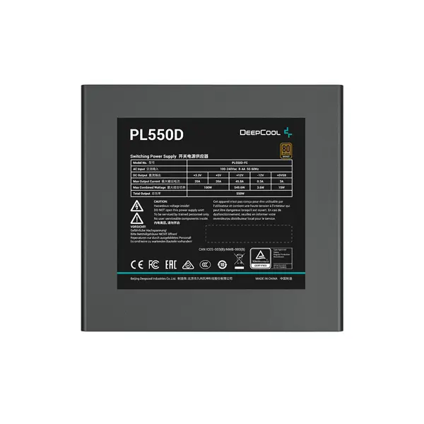 Napajalnik ATX DeepCool PL550D, 550W, 12VHPWR, 80 PLUS Bronze, črn, R-PL550D-FC0B-EU