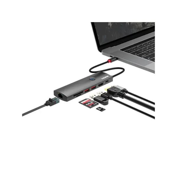 Roline USB-C multiport docking station, 1×4K HDMI, 2×USB 3.2 Gen 2, 1×USB Type C PD, 1×G-LAN, 1×SD/microSD Card Reader, 12.02.1126