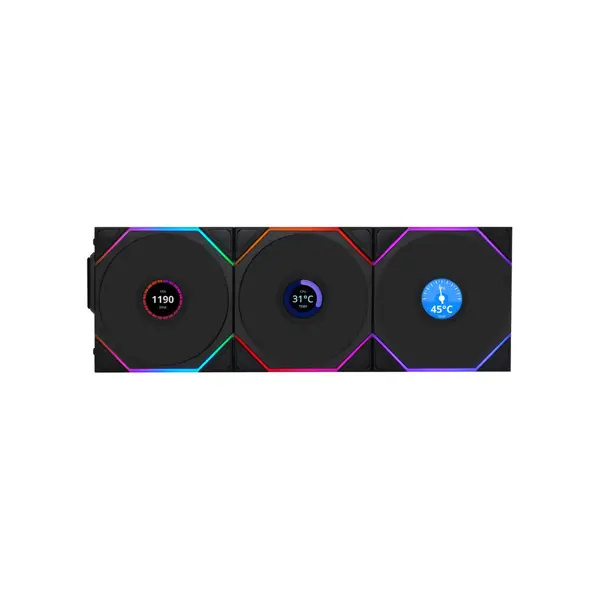 Ventilator za ohišje Lian Li UNI FAN TL Wireless LCD 120 Reverse Blade ARGB PWM 120mm, 3 Pack + Kontroler, črn, 12RTLLCD1W3B